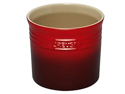 PG1001-67Lovely countertop decoration! Display your Le Creuset spatulas or kitchen tools in this stylish Utensil Crock. The durable stoneware material has an easy-to-clean enamel finish that resists chips, cracks, and stains. This handy Utensil Crock will match any home decor! Features: -Beautiful Cherry color. -Durable, non-porous enamel resists chipping, scratching, staining. -Attractive and practical decoration. -Oven and microwave safe. -Refrigerator and freezer safe. Specifications: -Material: Stoneware. -Dimensions: 6.5'' H x 5.75'' W. -Capacity: 2.25-Quart. -Cleaning and Care: Dishwasher safe.