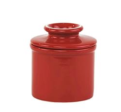 A practical and beautiful solution for storing and serving butter, the Butter Bell Crock keeps butter soft, delicious, and spreadable for up to 30 days without refrigeration. Modeled after the original French design, the butter crock is made from durable glazed stoneware or dolomite clays. Available in a wide array of colors, the crock can match existing dinnerware or stand on its own to add a touch of color to the table. It goes from the kitchen to the tabletop with no fuss. Butter's delicate flavor and freshness are protected by an airtight seal of water at the base of the crock, safely keeping butter fresh and spreadable without refrigeration, odors, or spoilage. It also keeps butter at the perfect "spreading" consistency by reflecting outside heat while insulating and cooling the butter. To use, firmly pack one stick of softened butter into the bell-shaped lid, pour cold water into the base of the crock, and place the lid upside down back into the base of the crock. Store the crock away from heat or sunlight, and change the water in the base every two to three days. Cleaning is easy since the crock is dishwasher safe.