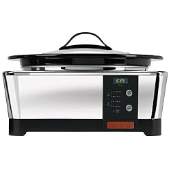 (More customer reviews)Searched for hours through the various reviews and was frustrated by the mediocre ratings of really expensive and not so expensive slow cookers. Wanted away from manual controls which sometimes get turned to a setting between clicks and the cooker doesn't heat up. This one is perfect. Doesn't overheat and doesn't under heat. Timer sets with a single push of a button and after cooking there is a keep warm feature that automatically kicks in. Black crock doesn't show stains and the lid is double vented and has a gasket that works. Bought what I thought to be stainless steel but it is actually bright chrome. Makes great meals. If there is negative, the cooker is a substantial size, so make sure you have the counter space (or storage space)!!