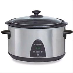 84396West Bend is a dependable brand that has occupied kitchens since 1911. This 6-quart Crock Pot is essential for the avid entertainer. Two cooking modes and an oval shape make it an ideal cooking medium for a variety of foods. Also featured is the removable crock which allows you to take a hot meal straight from the kitchen to the table! Features: -Two cooking modes - Programmable & Simple modes -20-hour Auto Off -Three settings - Keep Warm, Lo and Hi - plus operating light -Removable crock doubles as a serving dish -Large capacity for family-size meals -Dishwasher-safe crock and glass cover -Stainless steel exterior -Stay cool plastic handles -Recipes for stews, soups and meat dishes included in instruction manual -250 watts, 120 volts, AC only -UL listed -Dimensions: 14.5''h x 14.5''w x 10.5''d