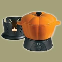 The party crock cooker has a 1.5 qt high quality cast iron cooking vessel that is safe for stove top use - and acordfree serving base that uses a tea light to keep foods warm on the serving table .Unique decorative pumpkin shape is ideal for serving hot party dips & secondary dishes for the Holidays . Electric base offers traditional slow cooking- refrigerator safe dish allows food to be preapred hours ahead of the party .