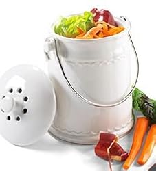 (More customer reviews)This sturdy ceramic kitchen compost holder has become an old friend, one of those dependable if inert gizmos that's there waiting by the coffeemaker every morning, prepared to do its job without complaint. If I find myself experiencing the odd sensation of affection for a piece of mass-produced pottery, I find some justification in the countless late-night trips on which it's accompanied me, summer and winter, dutifully bearing its load of fruit and veggie waste out into the backyard darkness to the compost unit.