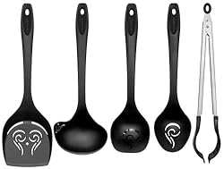 (More customer reviews)I received these and tried a few out over the last couple of days, and they seem pretty nice. Be aware, the tongs are kind of large, an have a wide profile and flat bottom edges. Also, though the set pictures a slotted spoon, I actually received a second spatula, the second not slotted, instead of the spoon. I'm not sure if everyone will, or if this was temporary or an error.