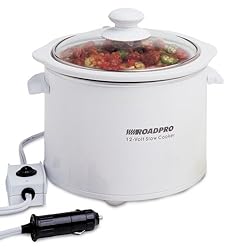 For camping, tailgating and roadside dining, there is nothing quite as handy as this multi-purpose 12-volt slow cooker. Plug it into your 12-volt socket and cook up a batch of soup, stew or chili while you are busy watching the road or just having fun. Removable crock is easy to clean, and the cooker base handles make it easy to carry. Special stretch cord keeps glass lid secure for travel. Another great innovation from RoadPro, your trusted travel companion, bringing the comforts of home to on-the-go living.