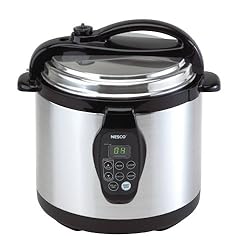 This versatile, multi-functional stainless steel digital 6-quart pressure cooker performs several functions: pressure cooker, slow cook (up to 9-1/2 hours) or steam, brown and warm. Use to make roasts, ribs or chicken, as-well-as rice dishes, soup/stews and steamed vegetables. LED display and soft touch buttons for easy use and programmable with presets including a delayed start up to 8 hours. Pressure cooking with the Nesco will cut cooking time by up to 70-percent. Automatically switches to warm setting after cooking cycle is complete. Comes with self-locking lid with automatic pressure release valve. Removable non-stick cooking insert is dishwasher safe for easy clean up. Also includes cooking rack/trivet and the stay-cool handles prevent burns. Brushed stainless steel exterior.