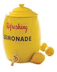 Radiating country charm and nostalgia from its lemon-yellow paint and brass spout, this ceramic lemonade crock looks fit for a sleepy cafe or summertime lemonade stand. With "Refreshing Lemonade" written across the front, no one will be able to resist this sweet treat. The perfect addition to spring garden parties, summertime BBQs and picnics and relaxing autumn afternoons, the lemonade crock also makes a winsome decoration anytime of year. This item has been discontinued. When it sells out, it will no longer be available. We apologize for any inconvenience.