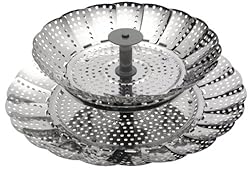 (More customer reviews)Great item ! Norpro makes very versatile double steamer.It's easy to use and easy to clean.It's big enough to steam large items, Yet can be small enough for lesser amounts.It can be seperated to cook in seperate pots so flavors won't mingle and it saves cooking time.It foldes compactly to take less storage space than larger steamers. So if you already have pots this should be the only steamer you ever need.