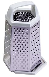 Progressive International is your source for the widest range of functional, inventive, and fun kitchen tools and great ideas put into practice. Our in-house designers spend hours in the kitchen coming up with ways to improve on a variety of traditional tasks and tools. Established in 1973, our commitment to quality and service allows us to offer a broad selection of quality kitchenware and other household products. The Progressive 6 sided grater features 5 different stainless steel grating and slicing surfaces and a clear side panel with graduated markings for measuring. A removable base allows for easy dispensing and cleaning.Dishwasher safe.