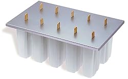 Enjoy homemade frozen treats with Progressive's frozen pop maker. Easily use fruits, juices, yogurt, or whatever to make up to 10 frozen pops at a time in one tray. The set includes 50 wood freezer pop sticks and an aluminum lid that keeps the sticks firmly in place while they freeze. Taking up minimal space in the freezer, the frozen pop tray measures 9 by 6 by 4 inches. The tray is great for parties and poolside fun, and it makes a fun gift idea for kids who like to make their own treats.