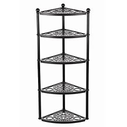 A stunning and space-saving addition to any busy kitchen, this handsome cookware stand offers a tasteful place to house and display cooking and baking essentials--everything from pots and mixing bowls to serving pieces, teakettles, potted plants, cookbooks, linens, and more. The durable cast-iron unit features a luscious black-enameled surface that blends beautifully with existing kitchen decor, with five decorative shelves that can be adjusted to different heights to accommodate a variety of tall or short items. Furthermore, its unique triangular shape tucks neatly into any corner to maximize storage capacity in both cozy and roomy kitchens, while its smoothly rounded finials and shelving edges offer added appeal. Designed with an open style for lightweight portability and a fresh, contemporary feel, the stand provides a subtle--yet striking--backdrop for a variety of colorful, muted, antique, or vintage treasures. Best of all, the sturdy French-made unit brings professional performance and a sense of European flair to classic and contemporary kitchens alike. Accompanied by an instruction booklet for easy assembly, the five-tier cookware stand measures approximately 10-1/2 by 15-1/2 by 35 inches.