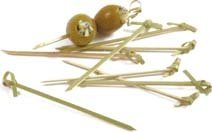 (More customer reviews)I love these little bamboo knot cocktail pics. I've seen them in very nice bars. They're perfect for skewering olives in martinis, cherries in manhattans, etc. Sleek & interesting looking - they're almost elegant. They're also biodegradable and bamboo is a renewable resource. I've seen them at about $3 - $5 /100, but sadly, shipping usually makes them too pricey so I stick to toothpicks for groups. If you're looking for a cool set of picks to re-use instead, these are my favorites:Amco Stainless-Steel Cocktail Picks, Set of 4