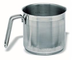 The Norpro multi-pot is very versatile--it won't easily damage when challenged by extremes of temperature and use. Employ it as you would a liquid measuring device, then warm your milk or sauce directly on the burner, and finally, use it as a serving device. Deep enough to measure and mix most batters, this multi-pot contains a nifty pouring spout to make pouring easier and is made of Krona stainless steel, which won't chip or dent.
