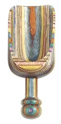 Wooden scoops go against the grain by sporting brilliant, almost psychedelic colors.They're made from thin layers of hand-dyed wood laminated together and polished to a sheen.