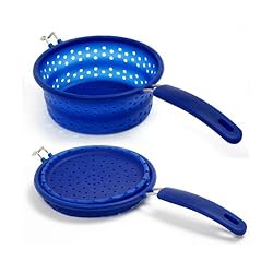 Norpro's blue knock-down silicone steamer and strainer helps preserve flavor and nutrients by steaming. Also ideal as a strainer. Stay cool non-slip handle and will rest over your pot or bowl with cylindrical shape and hook. Knocks down for easy storing.