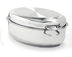 (More customer reviews)I received this roaster as a housewarming gift by our realtor several years ago. Although I knew it was a very nice gift, I'd never priced it until a friend asked for a recommendation on a roaster for a Thanksgiving turkey. I was really not terribly surprised at the price since I've used the roaster over and over and it still looks brand new, but I did have a renewed gratefulness for the gift! This roaster is very heavy, and with the deep lid, is also extremely versatile. I was a little concerned about food sticking, since I'd been raised using non-stick cookware, however, I was so pleased with the results that I no longer own non-stick cookware at all. Every roast, bird, or casserole I've made in this roaster has turned out beautifully. This is one item in my kitchen that I am certain will be passed down to my grandchildren some day.