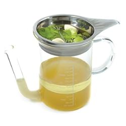 What a clever design! Make better, healthier gravy without the fat.Now a new deluxe design with a larger capacity, bigger handle, and a handy strainer attachment to separate out meat bits and large herbs.Simply pour your pan drippings into The Gravy Master and let the fat rise to the top. This fat separator pours from the bottom, not the top, leaving behind the fats for a lower fat, more flavorful gravy. This fat separator is a quality glass tool for years of use. It is dishwasher safe for easy cleanup. Use it for all fat separation tasks. With both standard and metric measures, this makes recipes easy. If you make gravies, get The Gravy Master.