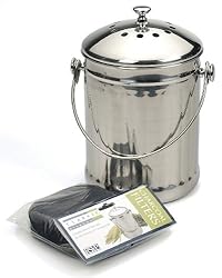Instead of throwing all your food scraps away, you can store them in this attractive compost pail. The stainless steel pail allows for a stylish and odor-free way of storing these useful scraps. The lid contains two charcoal filters so you'll never know what lies inside this sleek pail. The convenient handle makes carrying a gallons worth of potato peels, egg shells, coffee grounds and citrus peels to your garden compost heap. This pail is perfect for any kitchen countertop to disguise odors and hide the unpleasant sight of garbage.