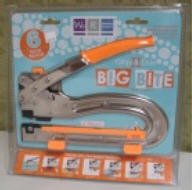 Big Bite Crop-A-Dile II is an all-in-one tool for punching, setting, and snapping.It's ideal for eyelets and gromlets.Can punch through paper, leather, fabric, plastic, thin tin, chipboard, and much more!Easily sets gromlets with a 1/3 inch center.Features a 6 inch punching reach that allows you to punch and set the accents at the center of your 12 by 12 inch pages.Rotating setting blocks and action setter help you do what you want to do without fumbling around for loose pieces. Also features 2 removable feet and an adjustable measuring guide. Size 12-1/4 inches long by 2-3/4 inches wide by 11 inches high.Silent and easy to use.Made in China.
